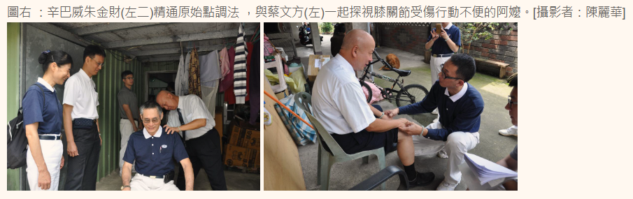 机缘:在辛巴威的慈济义工站服务期间,偶然接触到原始点保健法,发现其能有效缓解病患症状,因此开始在当地大力推广。