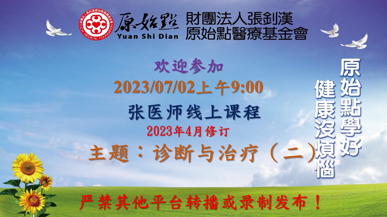 2021/12/12 各位师兄大家好!原始点官网〈张钊汉原始点健康资讯网〉自本月六日起因升级暂停十天左右。停网升级期间张医师每周日大课照常进行,请大家在小鹅通上看直播和回放。 今天直播课有新书发佈消息,請大家看直播。感恩大家! 新的电子书地址:book.cch-foundation.org/ 新书申请小程序。运费十元。每单可领最多五本书。0.01元/本。 2021年12月12号张医师线上直播链接 周日 12月12日 上午 9:00-11:00 主题: 1. 新书发表 2. 重病处理及轻重症案例分享 Youtube 链接:https://youtu.be/x_QtmYUVSKg Dr. Chang Online Live Broadcast ~ December 12, 2021 Sunday 9:00 am -11:00 am Topics: 1. The Launch Of New Book 2. The treatment o...