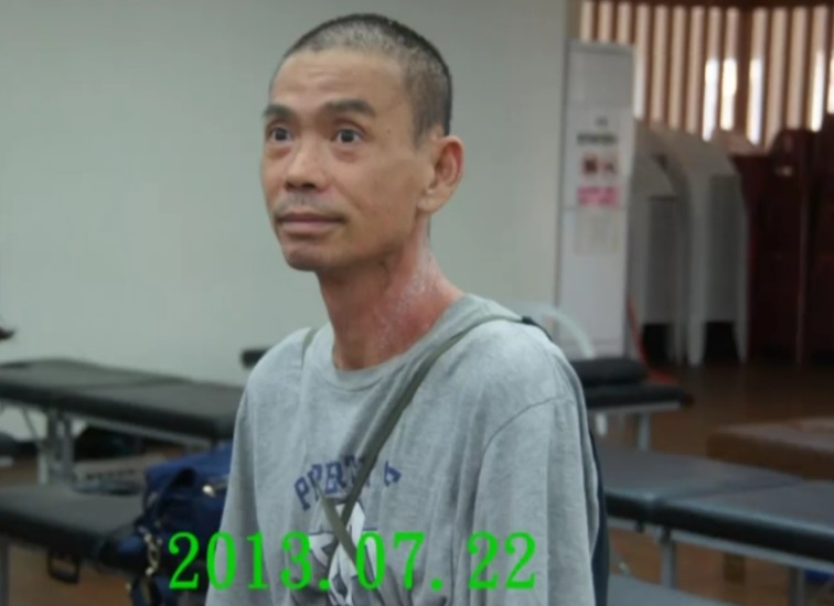 2013.06.11第一次前来基金会请求协助,无法行走都要坐轮椅。当天推揉完帮他破皮的地方涂抹姜粉。