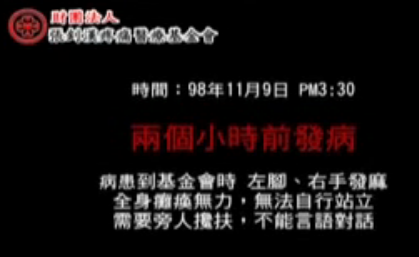 两个小时前吗?(患者的先生:对)(患者的先生:左脚,左脚也在麻)左脚也在麻?(基金会同仁:等一下,等他处理完再看)再看看情形改善多少。