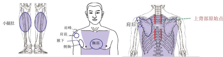 跟腰部的找法不大一样,比如说胸闷胸慌,你对过来,差不多一个掌心大就可以找得到。那如果在腹部这里对过来腰椎,它要一个掌心大。或是腰痛一定一个掌心大,他找的范围会比较大,如此而已。所以都是相似的。上背部唯一比较特殊的管理的就是小腿肚,小腿肚就是后面那里常常有时候容易怎么样?抽筋,各位有没有这种经验?有。那所以上胸椎竟然管到小腿肚,这个是比较特殊。
